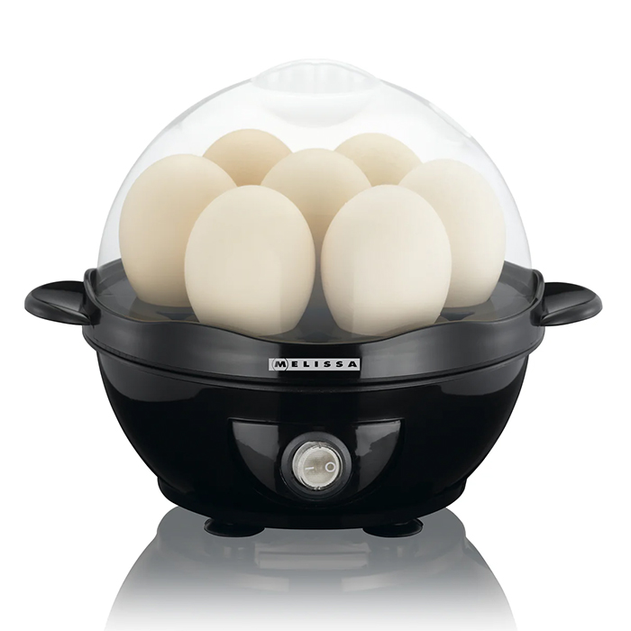 Ανοξείδωτος βραστήρας αυγών (1-7 αυγά), 360W.Με το βραστήρα αυγών της Melissa, μπορείτε να επιτύχετε το ιδανικό αποτέλεσμα κάθε φορά, είτε προτιμάτε τα αυγά σας μαλακά, μέτρια ή σφιχτά.Αρχικά, χρησιμοποιήστε την παρεχόμενη μεζούρα για να μετρήσετε την ακριβή ποσότητα νερού, ανάλογα με τον αριθμό των αυγών και το επιθυμητό αποτέλεσμα (μαλακό, μέτριο ή σφιχτό). Στη συνέχεια, ρίξτε το νερό στην θερμαινόμενη πλάκα και χρησιμοποιήστε την καρφίτσα αυγών για να τρυπήσετε το στρογγυλό άκρο τους, ώστε να μην ραγίσουν κατά το μαγείρεμα.Τοποθετήστε τα αυγά στη σχάρα και βάλτε τη πάνω στην πλάκα. Κλείστε το καπάκι και ενεργοποιήστε τη συσκευή. Το νερό θα θερμανθεί και τα αυγά θα μαγειρευτούν. Όταν το νερό εξατμιστεί, ο ενσωματωμένος θερμοστάτης θα απενεργοποιήσει αυτόματα τη συσκευή και θα ακουστεί ένα ηχητικό σήμα, ειδοποιώντας σας ότι τα αυγά είναι έτοιμα.Με αυτόν τον βραστήρα, μπορείτε να μαγειρέψετε έως και 7 αυγά ταυτόχροναΧαρακτηριστικά:- Κομψή σχεδίαση από υψηλής ποιότητας ανοξείδωτο ατσάλι- Συμπαγής σχεδιασμός για εύκολη αποθήκευση- Περίβλημα από ανοξείδωτο ατσάλι- Εύκολος στη χρήση- Διαθέτει θήκες για βράσιμο 1-7 αυγών- Θερμαινόμενη πλάκα κατασκευασμένη από γυαλισμένο ανοξείδωτο ατσάλι, για ομοιόμορφη κατανομή θερμότητας- Φωτιζόμενος διακόπτης λειτουργίας On/Off, για σαφή ένδειξη της κατάστασης λειτουργίας- Διαφανές καπάκι από πλαστικό, επιτρέποντας να παρακολουθείτε τη διαδικασία μαγειρέματος χωρίς να το αφαιρέσετε- Ηχητική ειδοποίηση κατά την λήξη- Αυτόματη απενεργοποίηση, μόλις ολοκληρωθεί ο βρασμός- Αποσπώμενος δίσκος με θήκες αυγών- Διαθέτει αντιολισθητικά ελαστικά ποδαράκια για μέγιστη ασφάλεια- Μήκος καλωδίου τροφοδοσίας: 1.00 m- Συμπεριλαμβάνεται μεζούρα μέτρησης νερού με ενσωματωμένο εξάρτημα για τρύπημα των αυγών- Υλικό: Ανοξείδωτο ατσάλι / Πλαστικό- Χρώμα: Μαύρο- Τροφοδοσία: 220-240V, 50/60Hz- Ισχύς: 360WΠεριεχόμενα συσκευασίας:- Βραστήρας αυγών- Δίσκος τοποθέτησης αυγών- Καπάκι- Δοσομετρητής νερού με καρφίτσα- Εγχειρίδιο οδηγιών